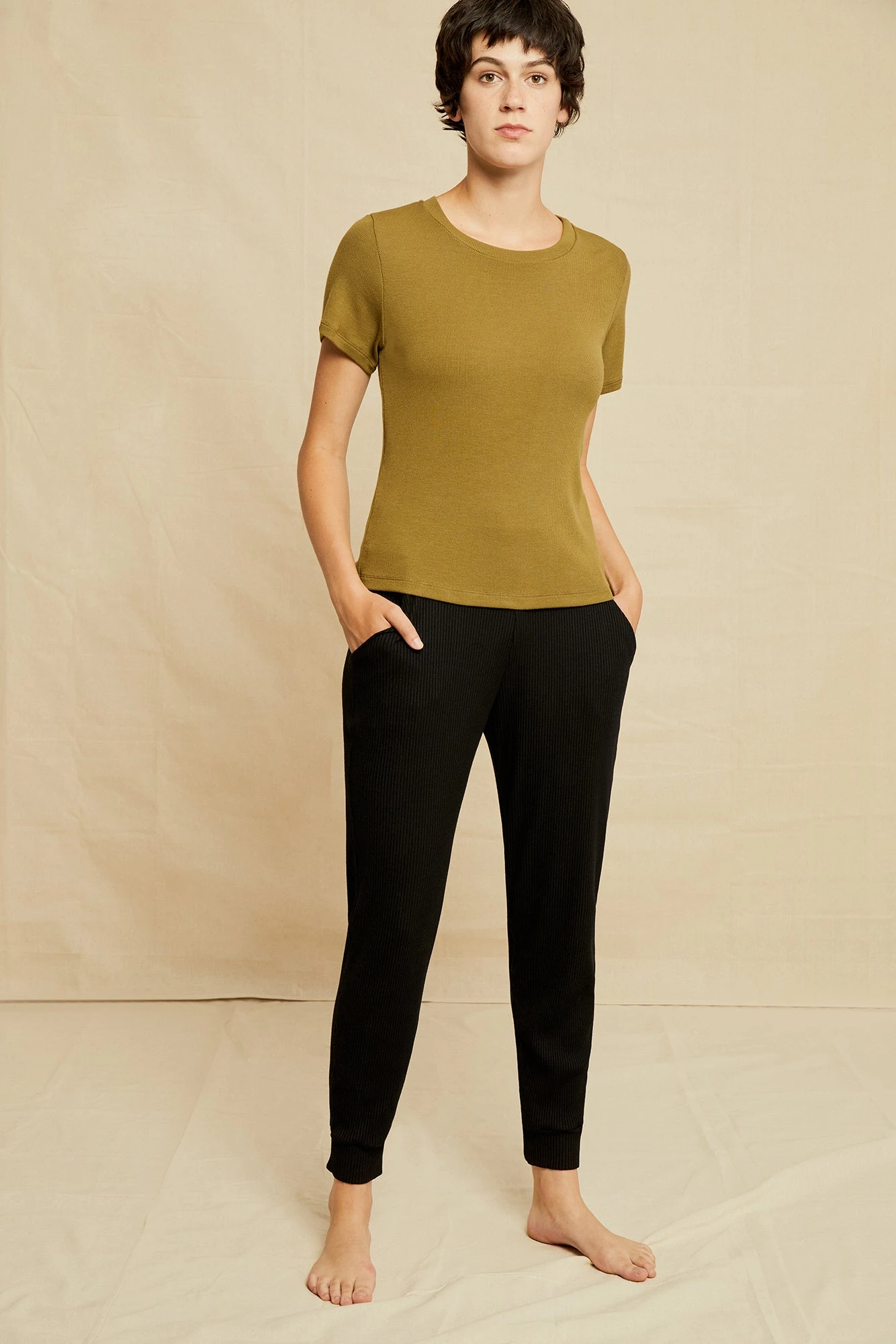 Short sleeve tee with an open neck and clingy, relaxed silhouette. Made in our silky-smooth Dream Rib, perfect for layering or wearing alone.