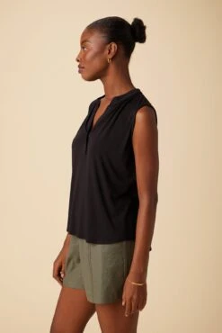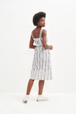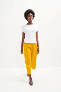Elbow sleeve organic cotton t-shirt sweater with linen stripes across the front. This relaxed silhouette provide ultimate comfort and versatility. We suggest pairing with your favorite high-rise and mid-rise bottoms.