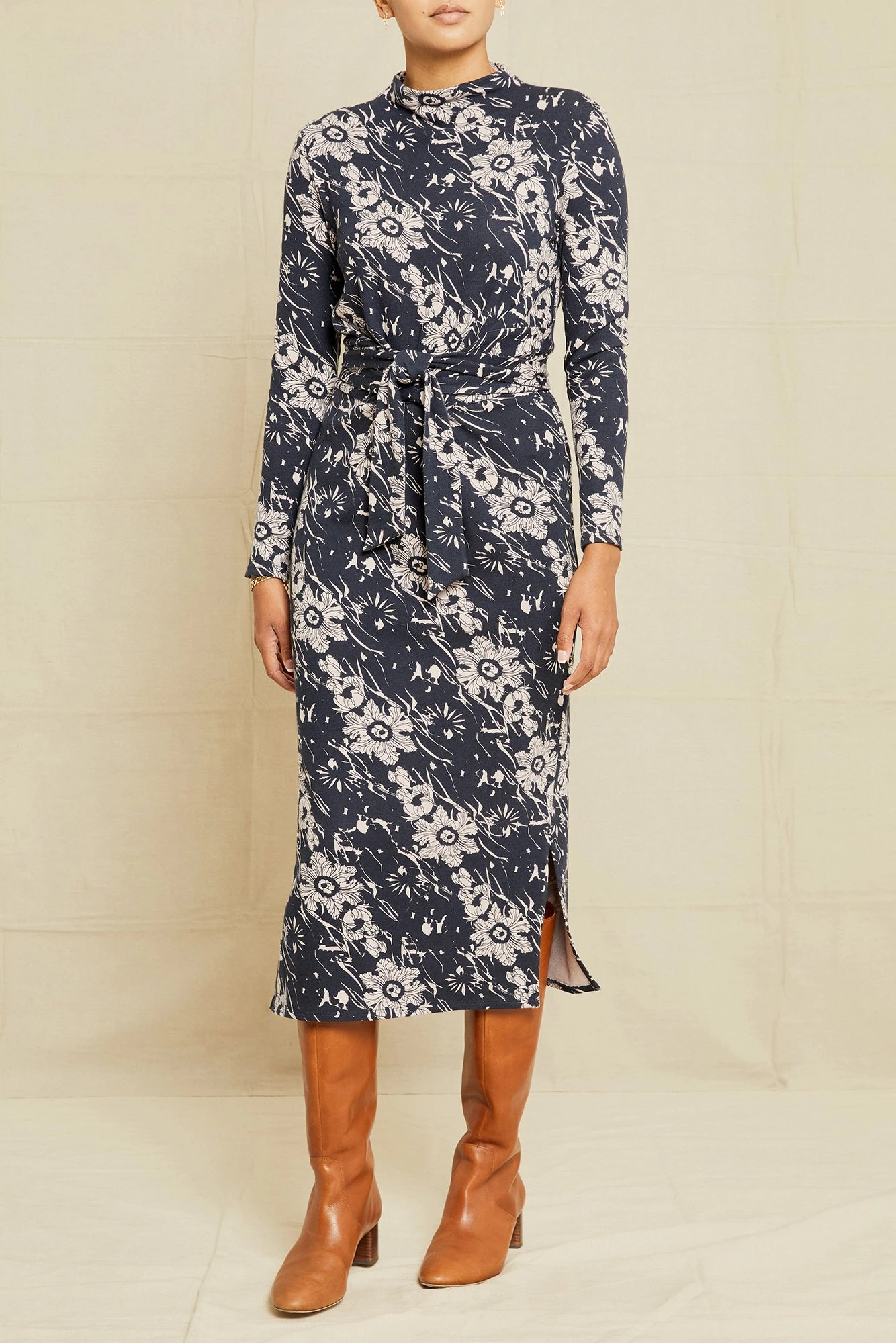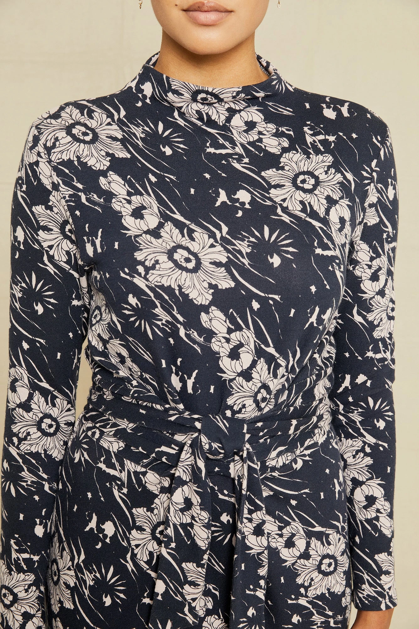 Midi dress featuring a mock neck, long sleeves, and an adjustable waist tie. Made from our premium blend of Organic Cotton and Modal for a soft and comfortable fit.