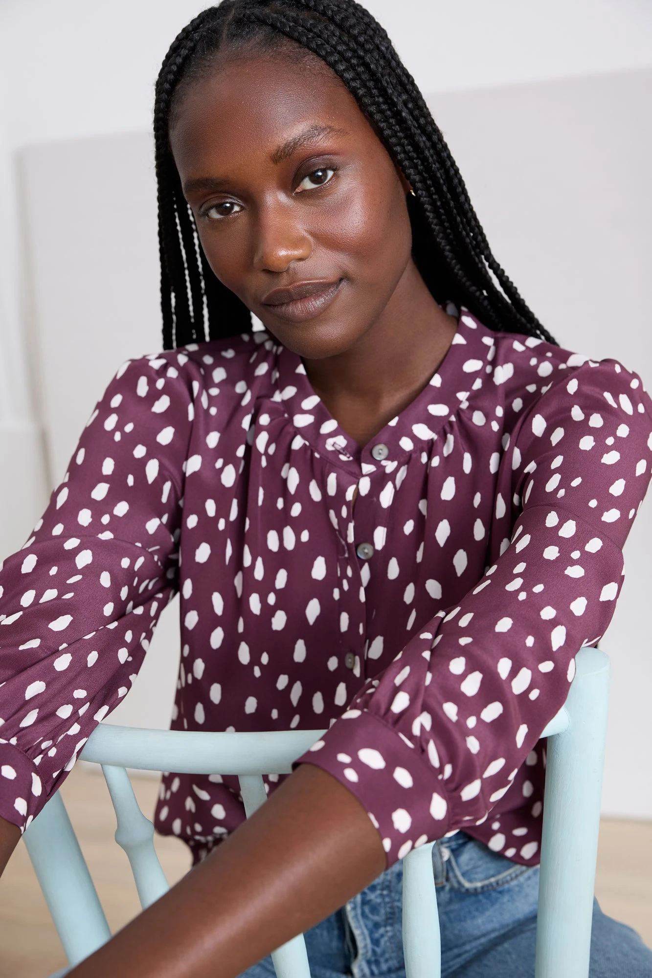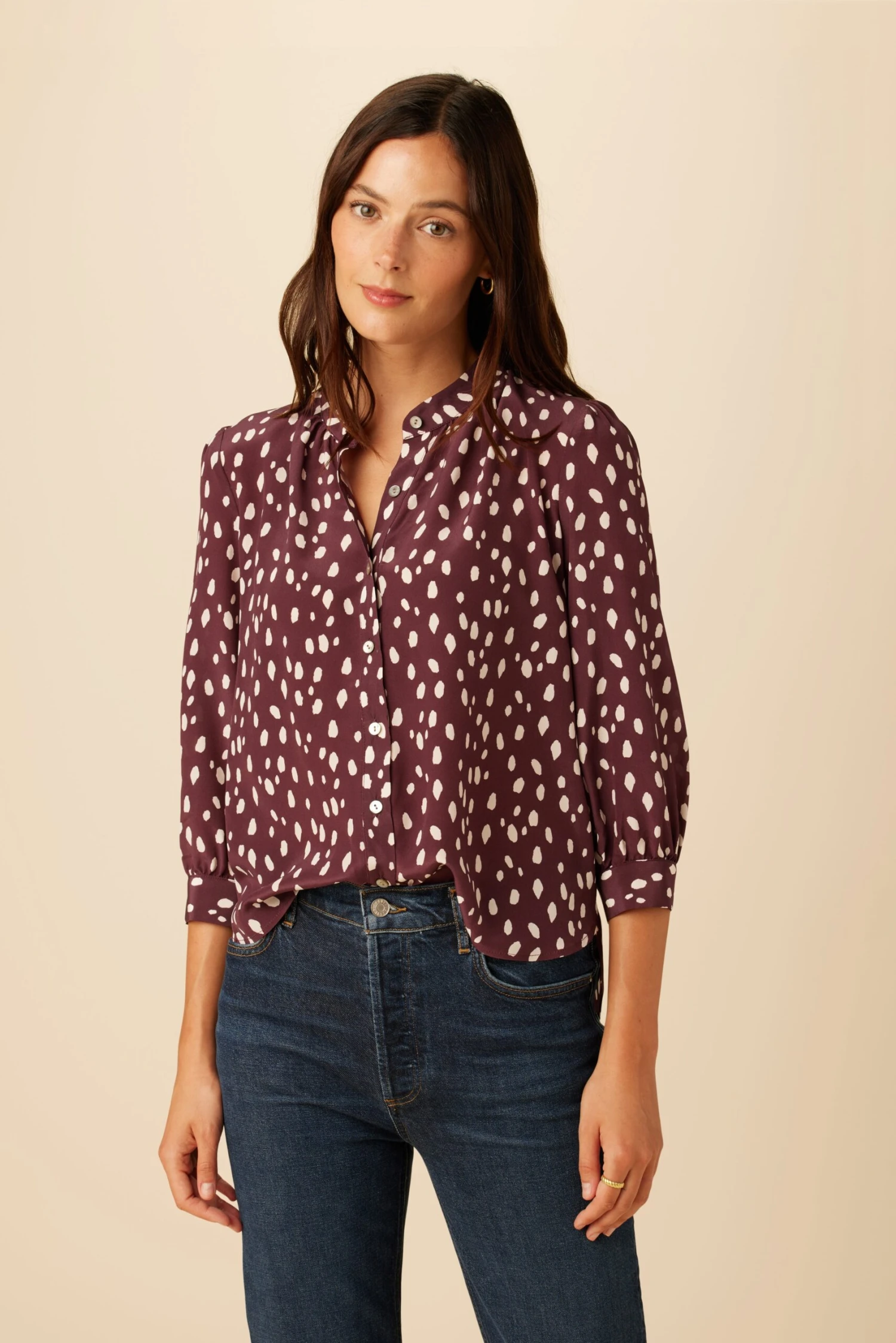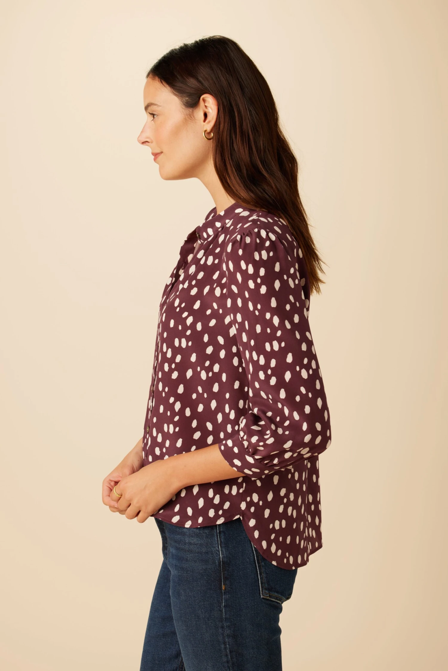 Be the first to review “Charlotte 3/4 Sleeve Washable Silk Blouse – Pebble Dot Plum” Cancel reply