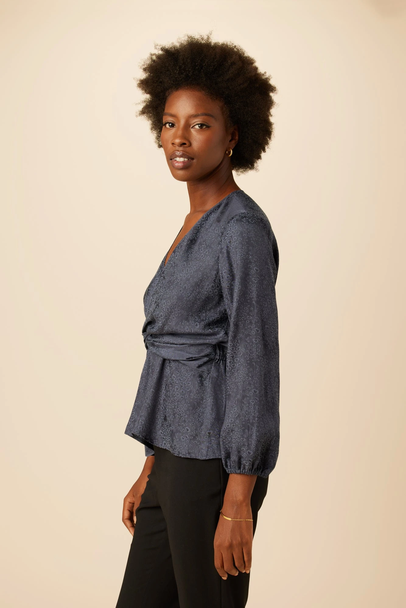 Slim fit, long sleeve blouse featuring twist front detail andΒ elastic at back waist and cuffs. This statement-makingΒ blouseΒ is made from a luxe blend of Cupro and Viscose, giving it the perfect amount of texture and sheen.