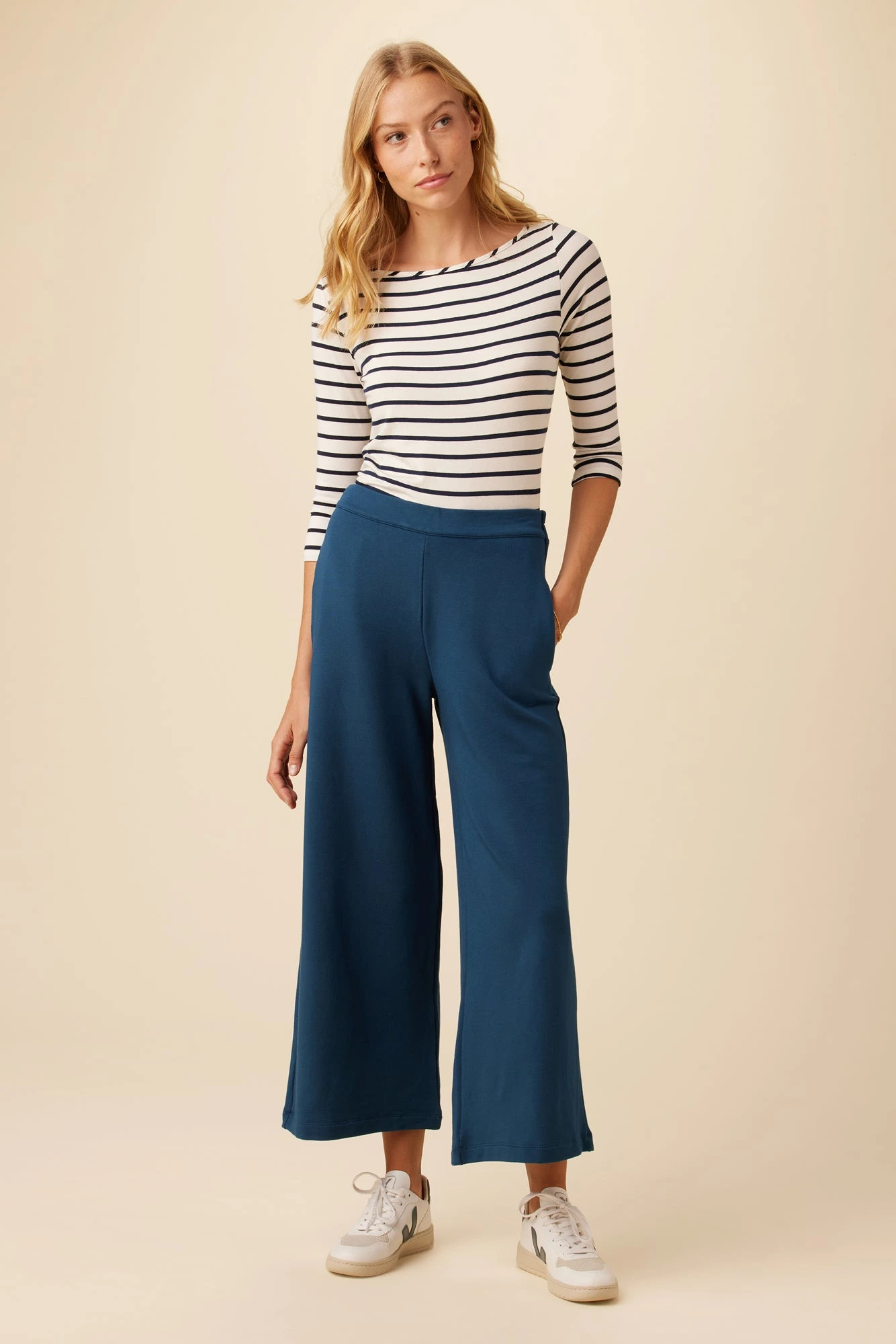 Mid-rise height with a cropped wide leg pant featuring functional pockets, made from our cozy and ultra-soft Luxe Fleece. Wear with your favorite lounge top or tee for a comfortable and classic look.