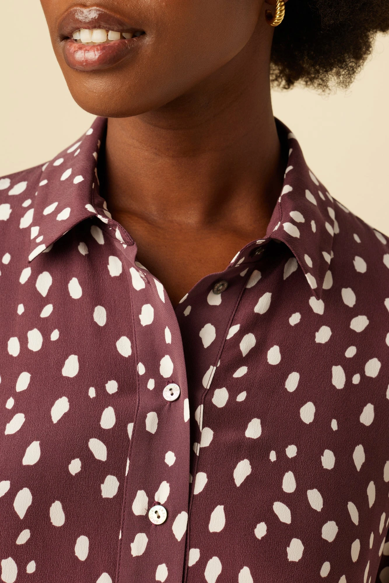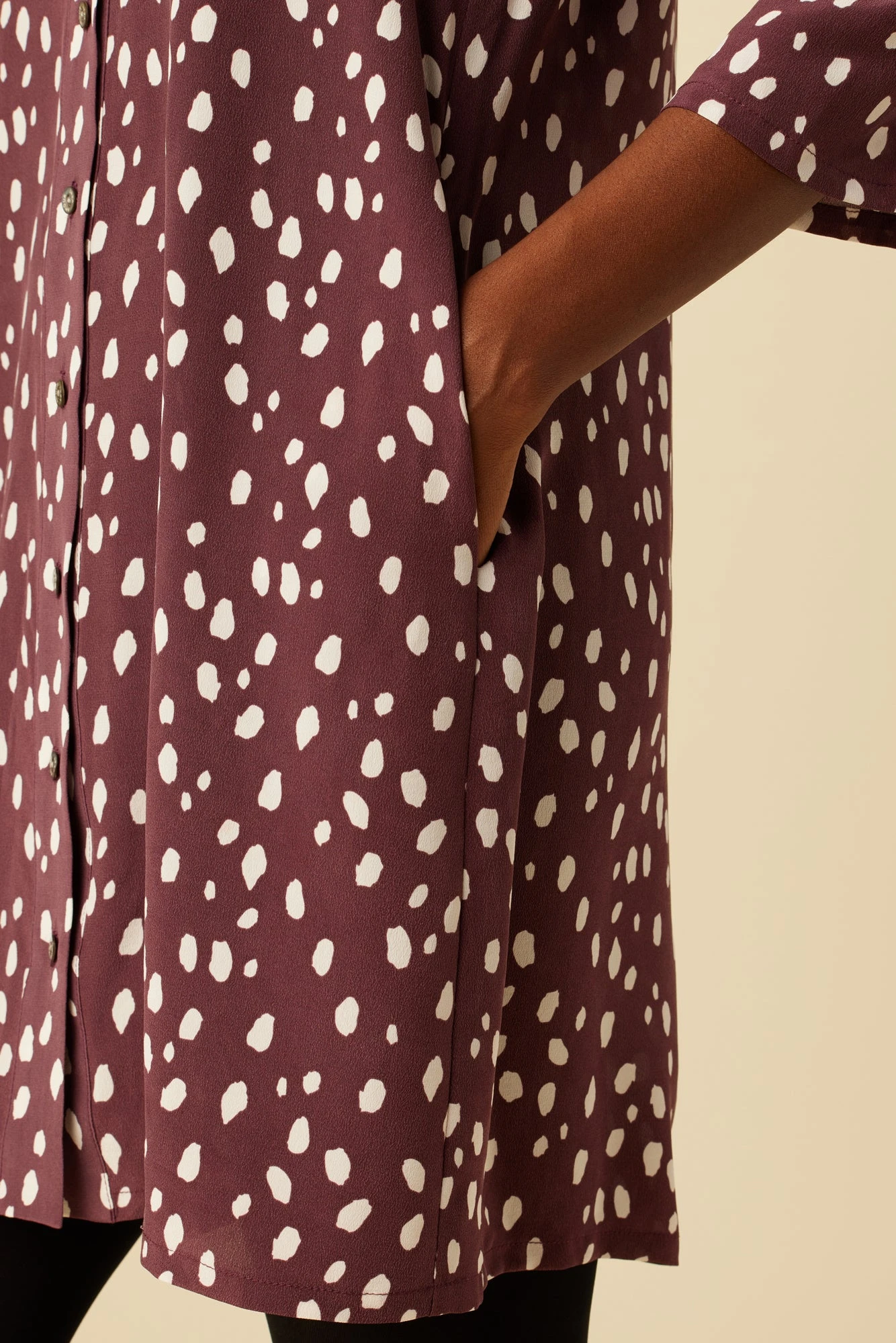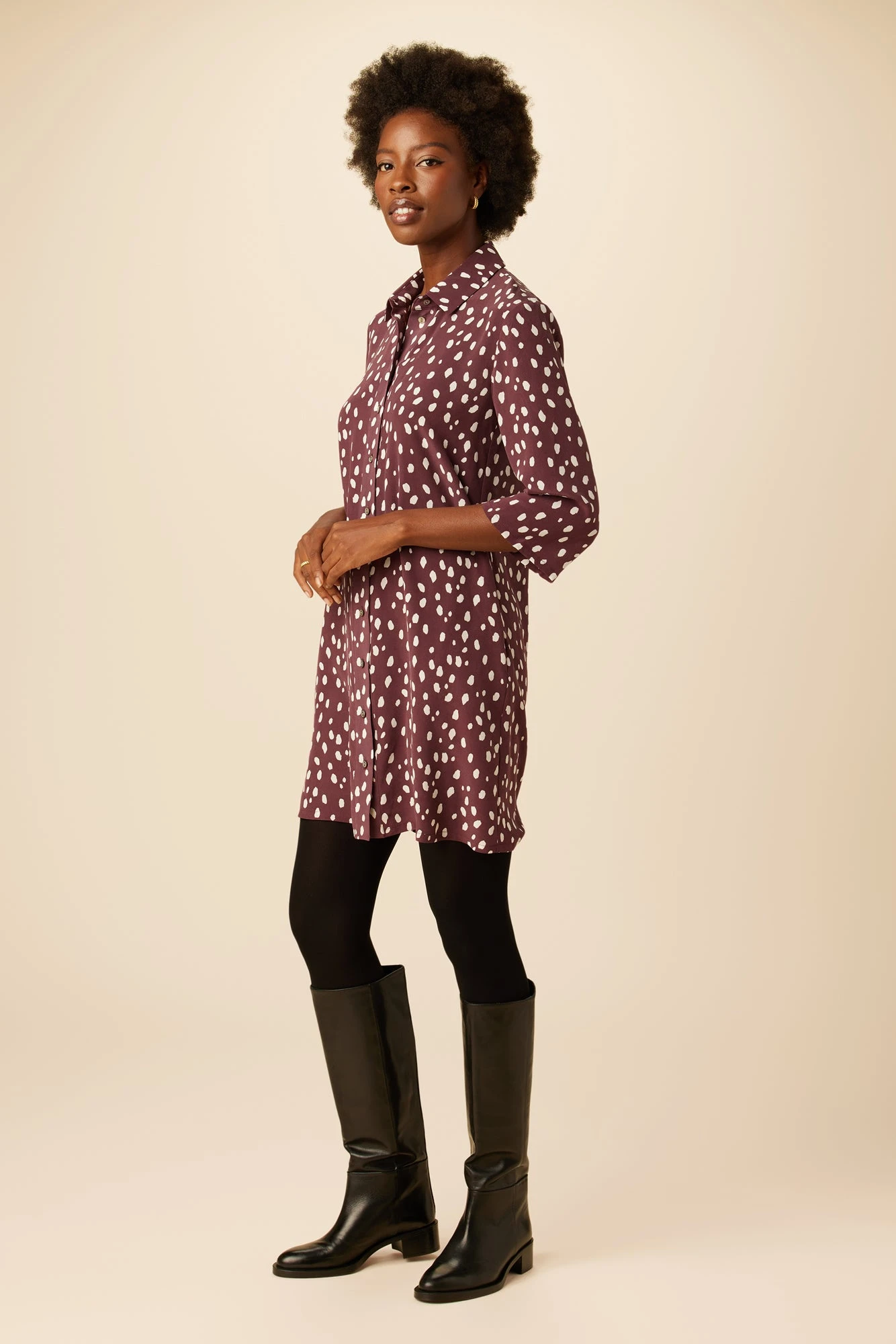 Shift dress featuring a 3/4 bell sleeve and collar button front placket. Made from our soft and sustainable Washable Silk, this stylish silhouette is easy, flattering, and feels good on the body.