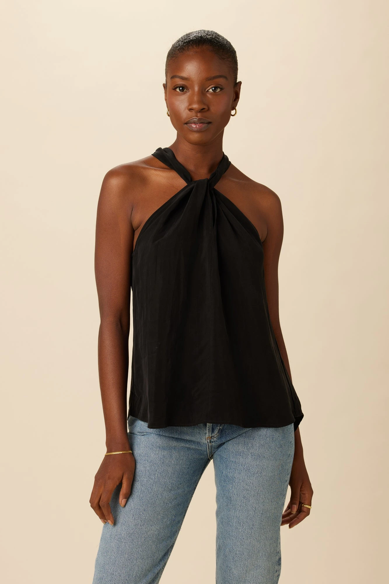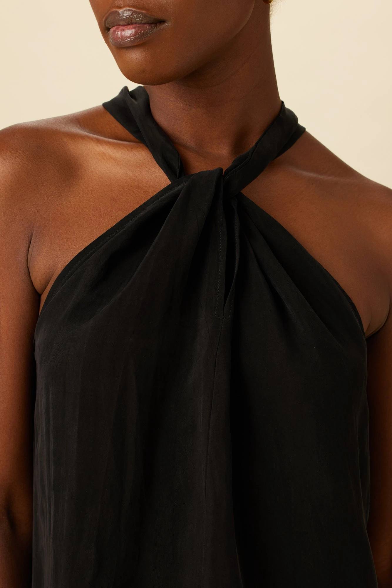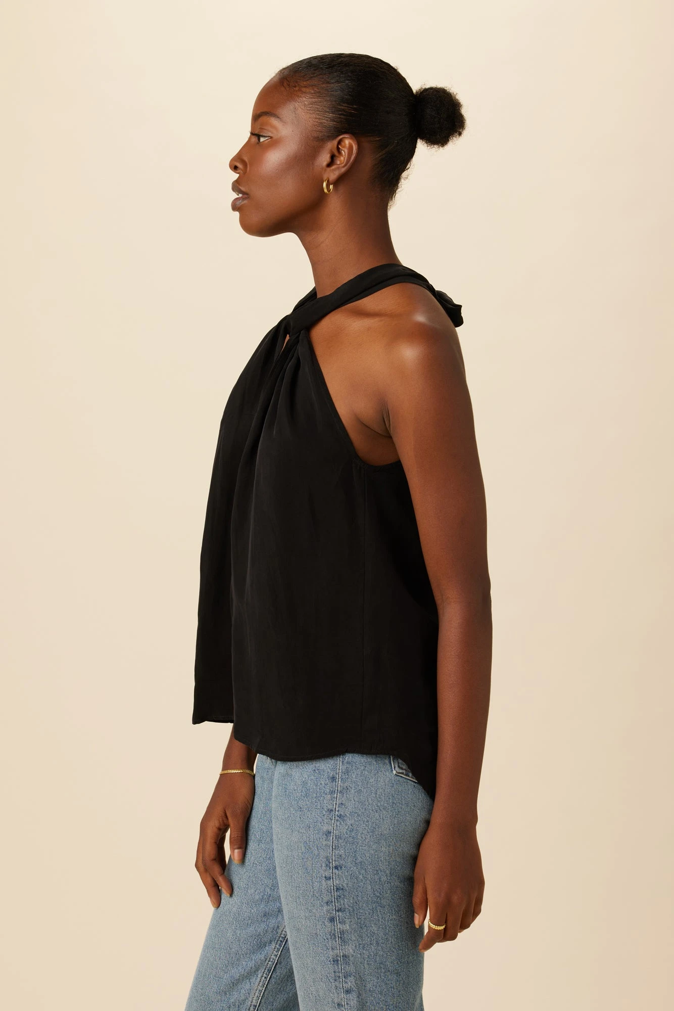 Relaxed fit, halter neck blouse with tie through keyhole, made in our super soft Cottonseed Cupro. This top pairs well with any rise bottoms, tucked in or over top.
