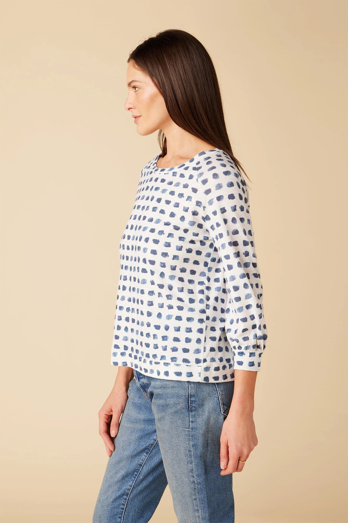 - 3/4 sleeve tee with gathering at the cuffs for a little added volume.