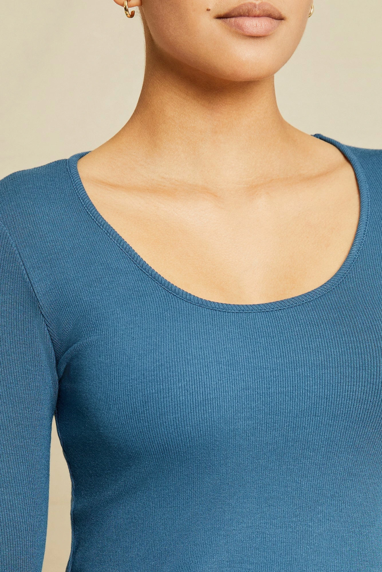 Long sleeve tee with an open neck and shirt-tail hem. A great layering piece made from our lightweight, ultra-soft Dream Rib fabric.