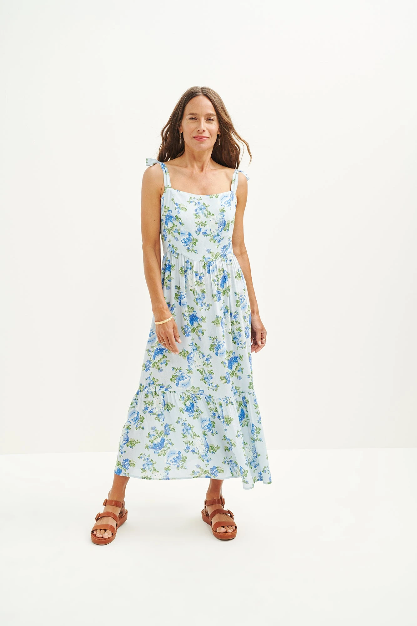 This dreamy ‘wear everywhere’ occasion dress is made from upcycled rayon as part of our commitment to repurpose old materials and reduce waste.