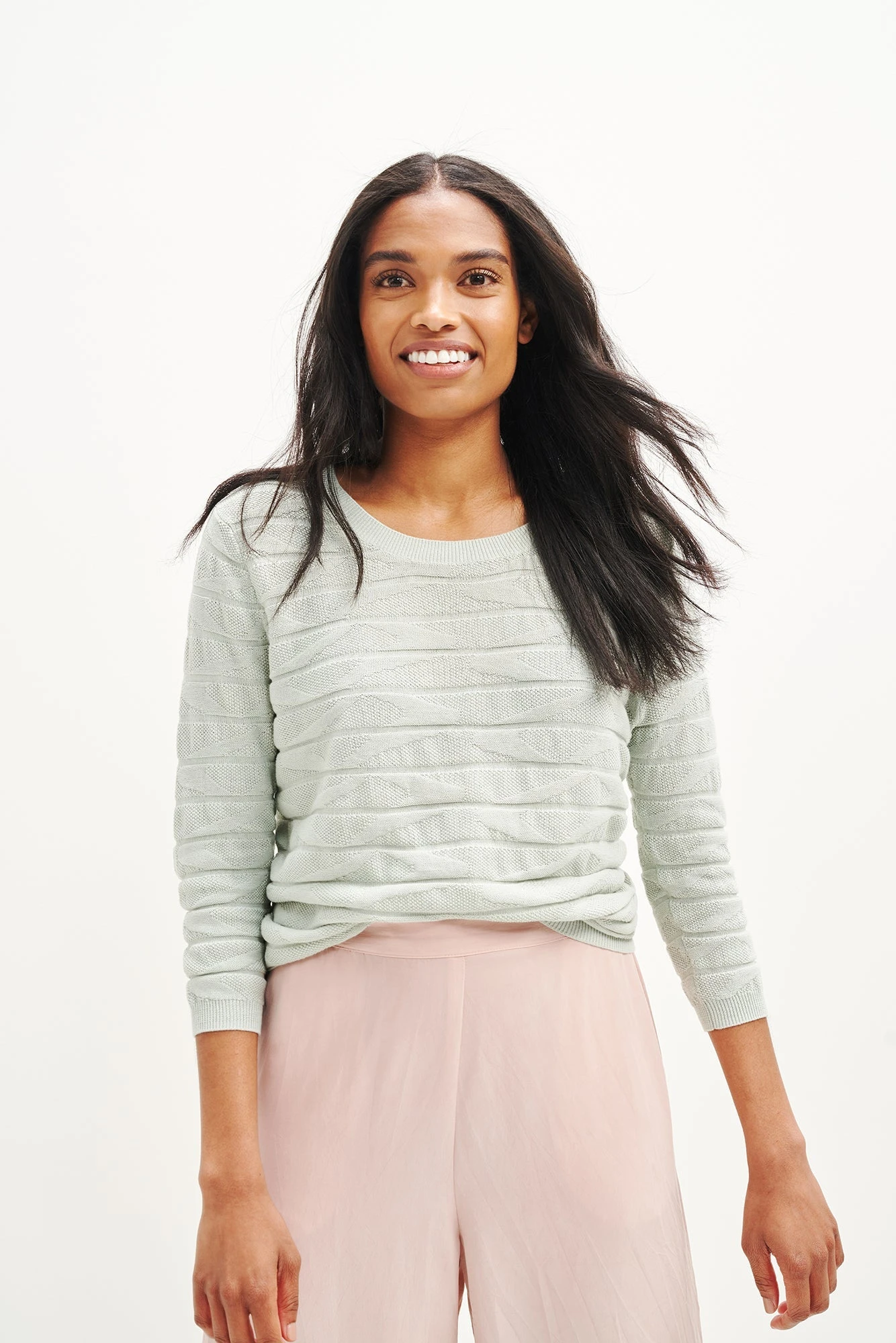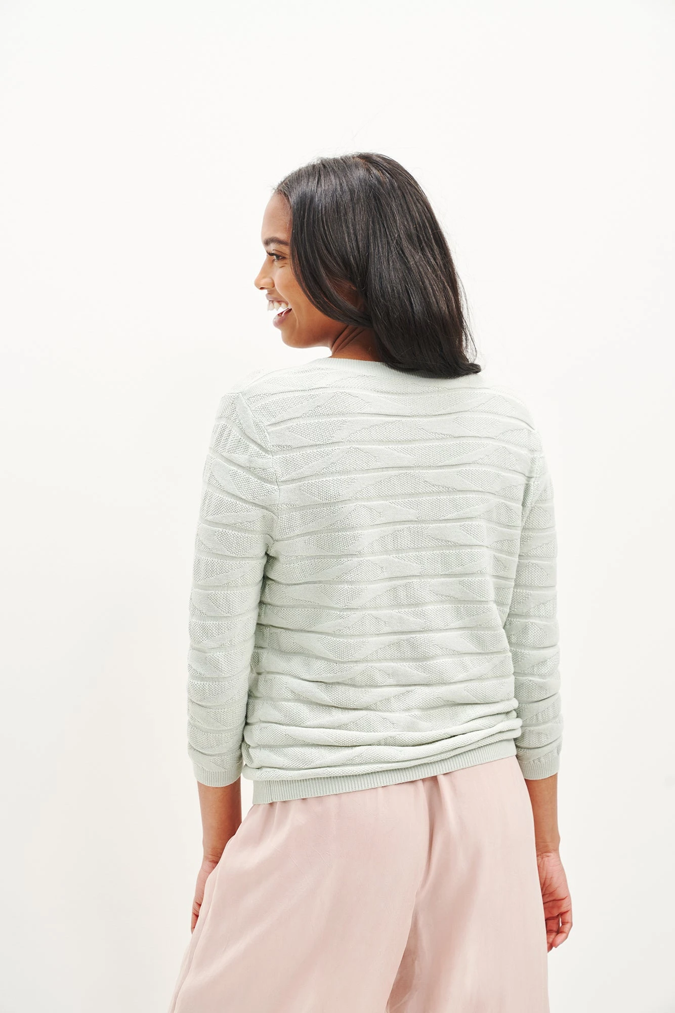 Lightweight long sleeve crewneck sweater with a textured stripe pattern. Cut from our Organic Cotton that is durable, soft, and made to last.
