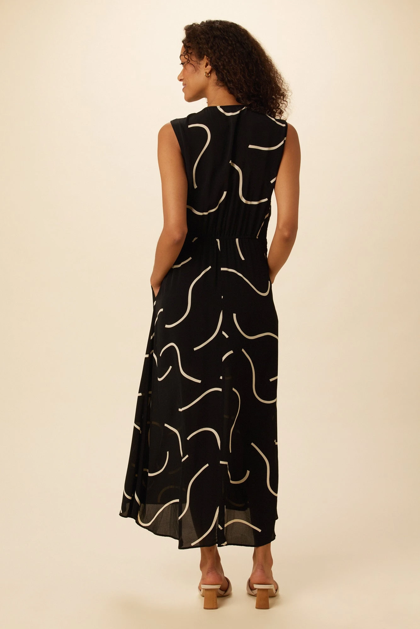 V-neck midi dress featuring side pockets and twist front detailing at the waist, comes with a slip lining. Made entirely from viscose, this easy silhouette is as comfortable as it is flattering.